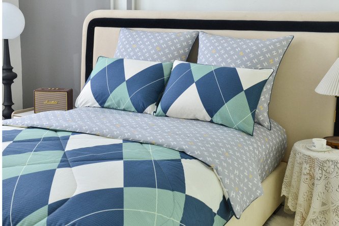 A comforter with a Richelieu blanket is extremely convenient – the blanket does not need to be tucked into the duvet cover, the set is already ready for use. The set includes a light, soft, summer blanket. It can be washed with other laundry, it dries quickly and does not need to be ironed after washing. The set is made of satin; this fabric is not only beautiful, but also very durable. It withstands numerous washes, does not stretch and retains its bright colors. The fabric contains 100% cotton, which guarantees high quality bedding set. Modern duvet filling quickly absorbs moisture, so you won’t be hot even in summer, but at the same time warm in winter. In addition, thanks to it, the item retains its shape for a long time even after washing.