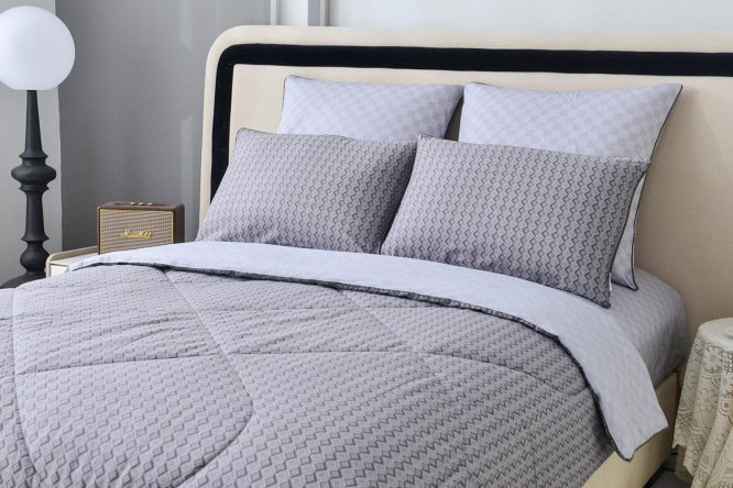 A comforter with a Richelieu blanket is extremely convenient – the blanket does not need to be tucked into the duvet cover, the set is already ready for use. The set includes a light, soft, summer blanket. It can be washed with other laundry, it dries quickly and does not need to be ironed after washing. The set is made of satin; this fabric is not only beautiful, but also very durable. It withstands numerous washes, does not stretch and retains its bright colors. The fabric contains 100% cotton, which guarantees high quality bedding set. Modern duvet filling quickly absorbs moisture, so you won’t be hot even in summer, but at the same time warm in winter. In addition, thanks to it, the item retains its shape for a long time even after washing.