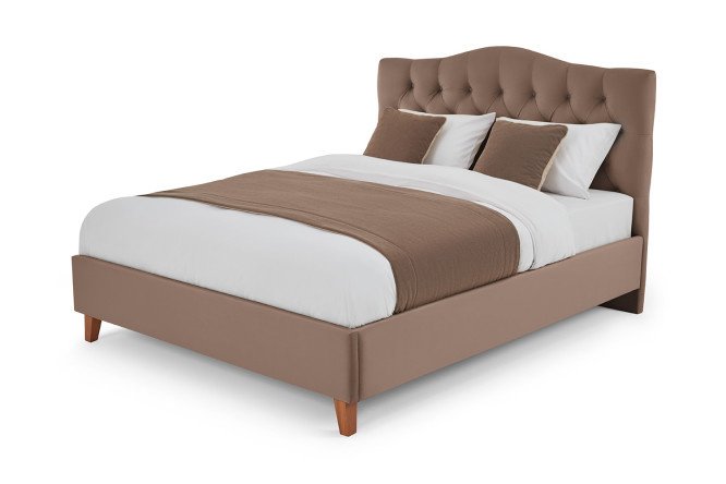 Bed with a lifting mechanism SCANDICA Ingrid upholstered in microsuede material in cappuccino color. The bed is equipped with a base and a lifting mechanism; the mattress is not included.