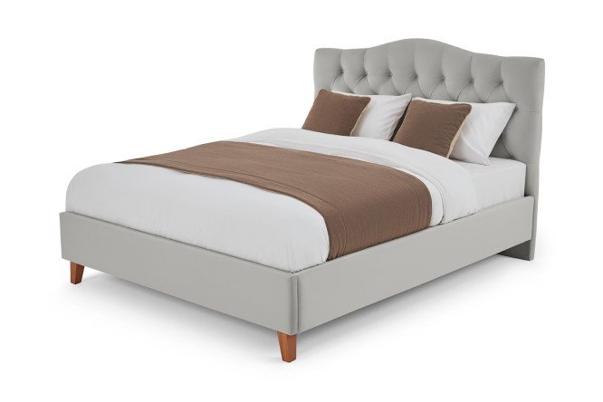 SCANDICA Ingrid lift-up bed upholstered in microsuede in light grey. The bed is equipped with a base and a lifting mechanism; the mattress is not included.
