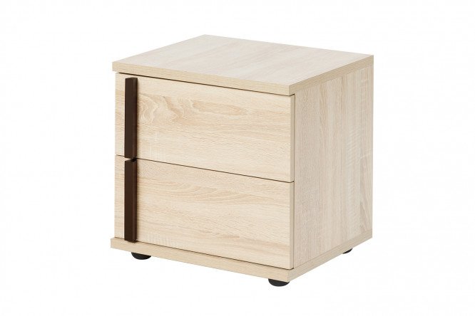 The Bauhaus bedside table is ideal for a bedroom decorated in a modern style. Despite the absence of a large number of decorative elements, it looks very interesting and fresh. The color of Sonoma oak, clear graphic lines, chocolate-colored handles made of solid beech – all together this creates a single original image.