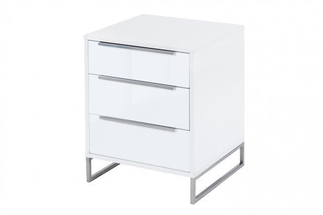 The glass fronts of the drawers create an unusual play of light in the room, giving the entire room an even more modern look. The furniture body is made of laminated chipboard, a wear-resistant and durable material that does not require special care.