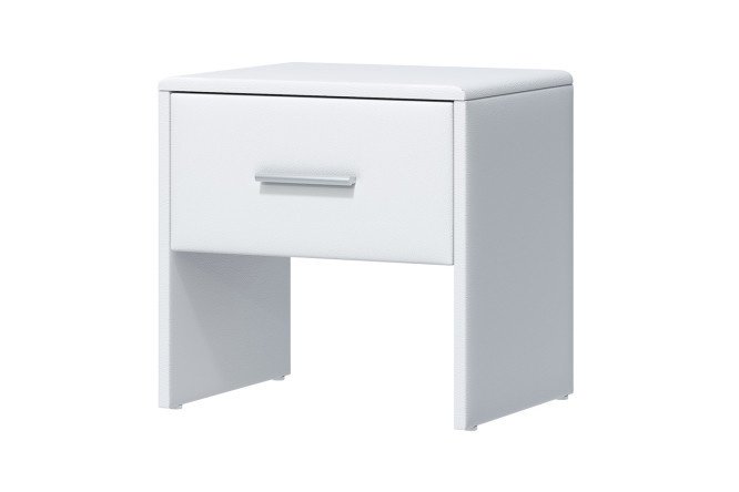The Mila bedside table, upholstered in snow-white faux leather, is a stylish and elegant model that will decorate any bedroom. White furniture always looks advantageous in the interior, making it lighter and more elegant, and also goes well with furniture of any other shades.