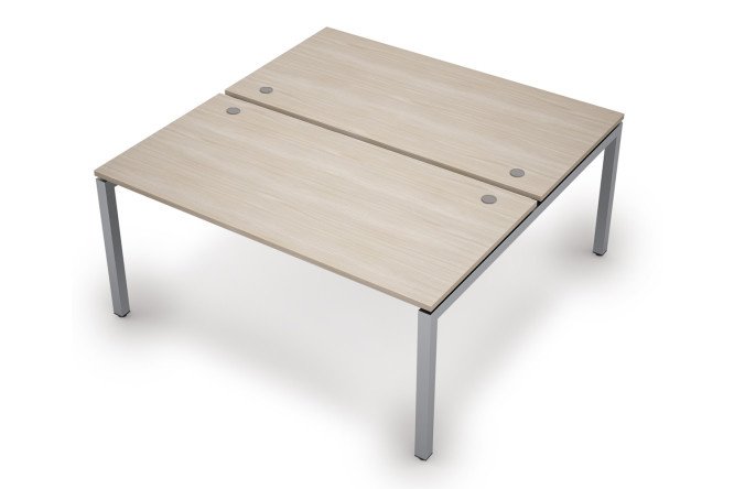 The AVANCE bench system for two workstations is a table consisting of two tabletops on a single frame. This workspace arrangement system is more cost-effective than a similar option of free-standing desks. Also, due to the minimum number of supports, the system visually looks much lighter, and there is more free space under the table.