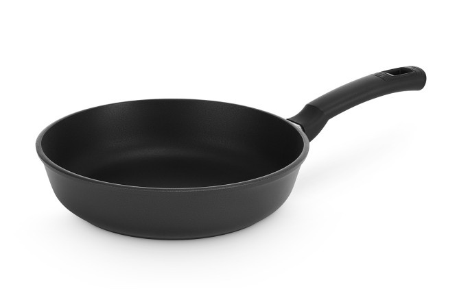 The BERKRAFT Teos frying pan will turn even the routine making of scrambled eggs or cutlets into pleasure and make the result delicious. After all, in cooking, as elsewhere, everything depends on the little things. A pleasantly heavy, thick-walled frying pan with a glossy non-stick coating will allow you to cook perfect dishes. Thanks to the depth and thickness of the walls, it is perfect not only for frying steaks and potatoes, but also for multi-component dishes with complex recipes. At the same time, the housewife is provided with ideal comfort during the entire process – the frying pan has an optimal shape, which ensures uniform and rapid heating of the contents, an ergonomic handle with a bakelite lining, does not heat up, and lies firmly in the hand. There is a hole at the end of the handle – the frying pan can be stored on the rail.