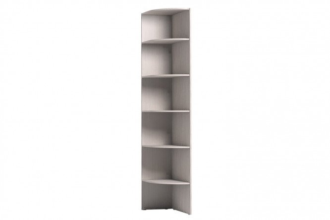 The rack will help make the interior more expressive and functional. It can be used independently, installed in a free corner, or together with a cabinet from the collection of the same name. The shelving unit takes up little space, but instead of a flat end wall of the cabinet, you get several open, radial-shaped shelves. You can place many different little things, decorative elements, and photographs on them. The rack is made of laminated chipboard, a lightweight and durable material; the shelves can withstand significant loads.