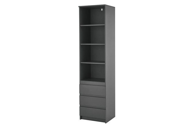 The Stern shelving unit will be an excellent addition to other furniture in the collection of the same name, but can also be used separately. This is a compact but roomy model with shelves and drawers, for which there is a place even in a limited space, especially since there are no protruding handles on the facades that you can accidentally hit when passing by.
