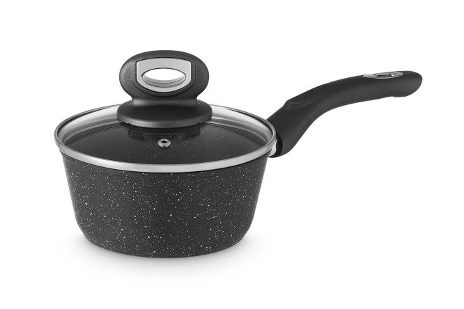 Ladle with lid BERKRAFT Miranda made of forged aluminum with PFLUON marble coating, bakelite, tempered glass.