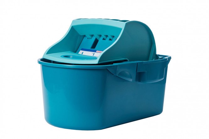 The Perfect floor cleaning bucket with wringer is: a comfortable and practical plastic handle; compactness; effective spinning with one click; always dry and clean hands; quality materials.