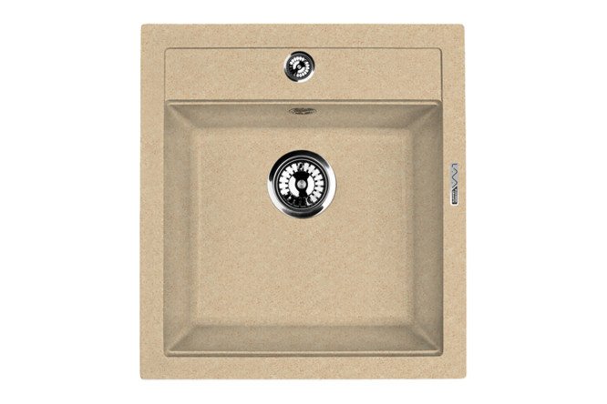 The rectangular kitchen sink LAVA Q.1 CREMA has a laconic modern design. A clear shape, strict, impeccable lines, and a geometrically defined bottom give it a special elegance. The shelf for the mixer has one through hole and two designated holes. The product is securely fixed to the tabletop using metal fasteners. The sink is made of high-strength engineered granite. Its main component is natural stone chips, which makes the surface resistant to mechanical damage and aggressive detergents. The minimum wall thickness is 8 mm. The model is equipped with drain fittings with a basket valve, which traps large particles, preventing blockages.