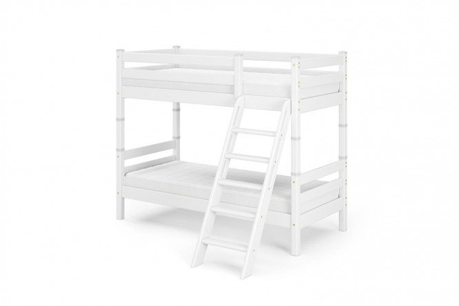 Sonya bunk bed made of solid pine material in “white translucent” color.