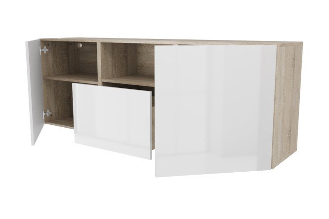 Cabinet 2 doors, drawer and shelf Oscar Amika 180×64 with push to open, Sonoma oak / white gloss