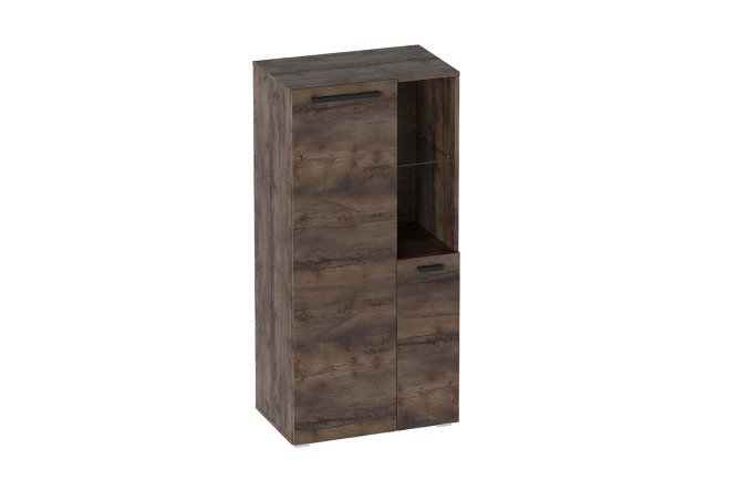 The model is a convenient and spacious combined storage system. The glass shelf is designed for decorative items, figurines, souvenirs, and any elegant little things that you want to keep in sight. On the shelves behind solid hinged doors you can store anything: boxes of things, textiles, small equipment weighing no more than 5 kg.