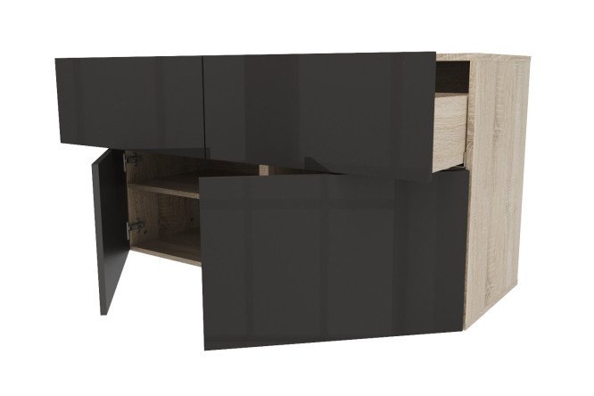 Cabinet 2 drawers 2 doors Oscar Amika 120×64 with closers, Sonoma oak / glossy black graphite