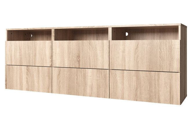 Cabinet 3 shelves and 6 drawers Oscar 180×64 with push to open, Sonoma oak