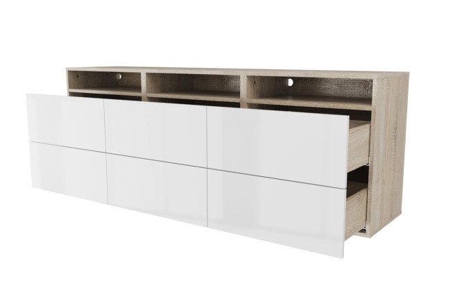 Cabinet 3 shelves and 6 drawers Oscar Amika 180×64 with closers, Sonoma oak / white gloss