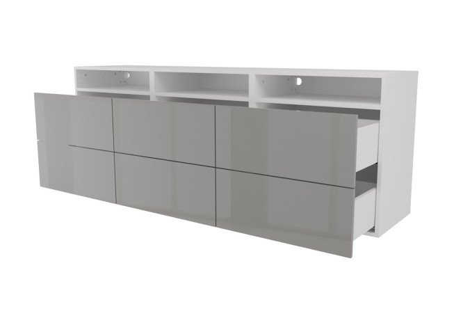 Cabinet 3 shelves and 6 drawers Oscar Amika 180×64 with closers, white / dusty gray gloss