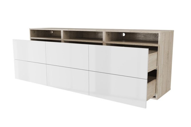 Cabinet 3 shelves and 6 drawers Oscar Amika 180×64 with push to open, Sonoma oak / white gloss