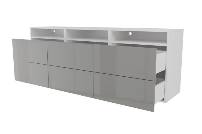 Cabinet 3 shelves and 6 drawers Oscar Amika 180×64 with push to open, white / dusty gray gloss