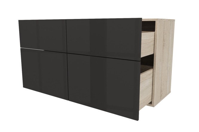 Cabinet 4 drawers Oscar Amika 120×64 with push to open, Sonoma oak / glossy black graphite