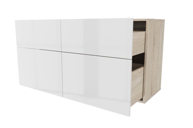 Cabinet 4 drawers Oscar Amika 120×64 with push to open, Sonoma oak / white gloss