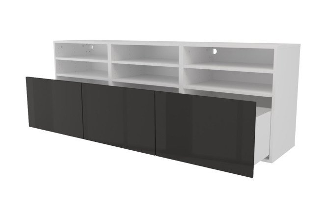 Cabinet 6 shelves and 3 drawers Oscar Amika 180×64 with closers, white / black graphite gloss
