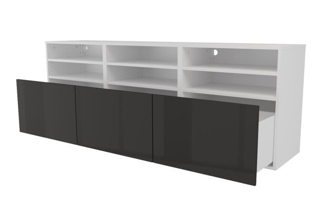 Cabinet 6 shelves and 3 drawers Oscar Amika 180×64 with push to open, white / black graphite gloss