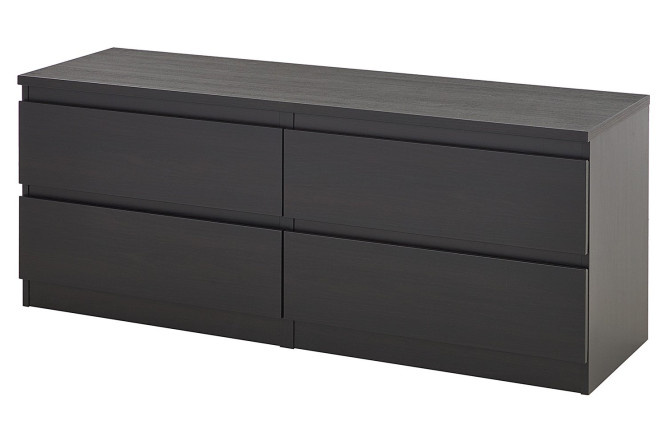 The Castor cabinet is an excellent choice for a living room or bedroom in the loft, hi-tech, Provence style. Simple symmetrical lines and the absence of front fittings allow the chest of drawers to easily fit into any modern interior. Four spacious drawers can be used to store clothes, linen, and bedding. The surface of the cabinet, made of chipboard (chipboard), can withstand loads of up to 15 kg. This means that you can install a home theater, TV, or smart speaker on it. Furniture made from laminated chipboard does not require complex care – it is enough to wipe off dust from the surface with a dry soft cloth as needed.