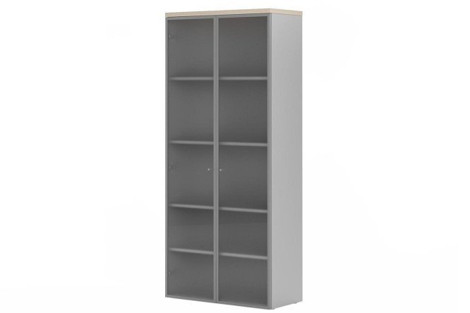 The FLASH wardrobe is a modern interior element that is perfect for ambitious and energetic managers who prefer current trends and creative solutions. It is available in two colors – oak 131 and larch, which harmoniously combine with the gray aluminum frame. This cabinet will be a great addition to your office, providing order and style at the same time.