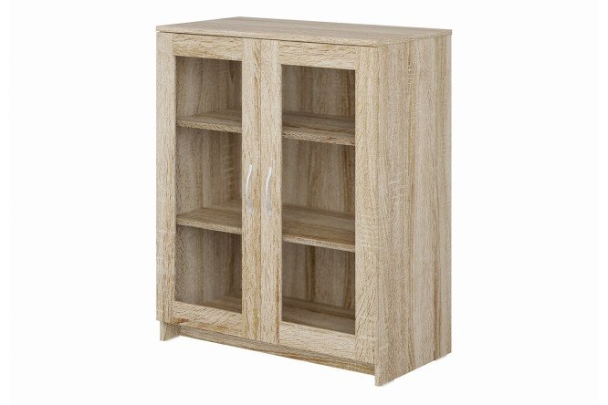 A small Sirius cabinet will complement the interior of a living room, bedroom or narrow hallway, without taking up much space. It will not only decorate the room, but will also help you conveniently store various things. The space of the cabinet is divided into sections by horizontal shelves, where books and other items can easily be placed, and transparent glass doors help you quickly find what you need. The tabletop is highly durable and can withstand loads of up to 15 kg, which means you can put household appliances on it. The facade of the product is made of high-quality chipboard and equipped with reliable fittings.