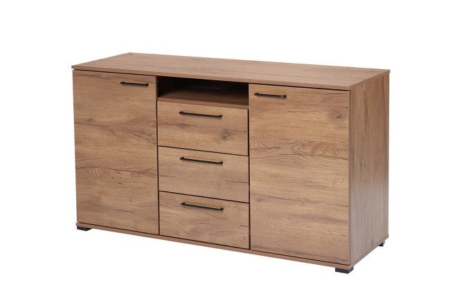 Valerie’s nightstand is made of laminated chipboard in tobacco oak color.