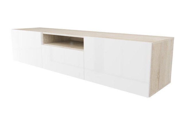 Cabinet with 2 doors, drawer and shelf Oscar Amika 180×38 with push to open, sonoma oak / white gloss