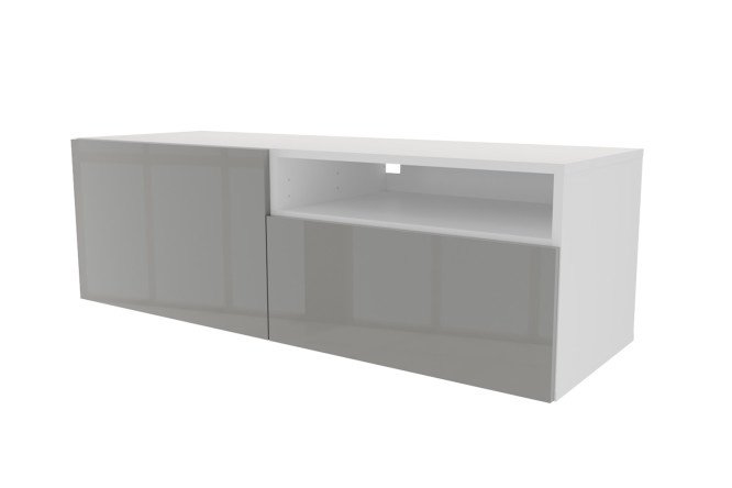 Cabinet with 2 drawers and shelf Oscar Amika 120×38 with push to open, white / dusty gray gloss
