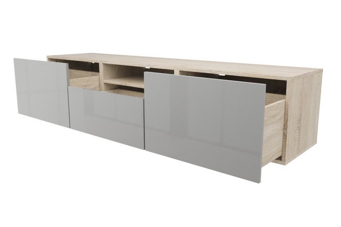 Cabinet with 3 drawers and 1 shelf Oscar Amika 180×38 with push to open, Sonoma oak / dusty gray gloss