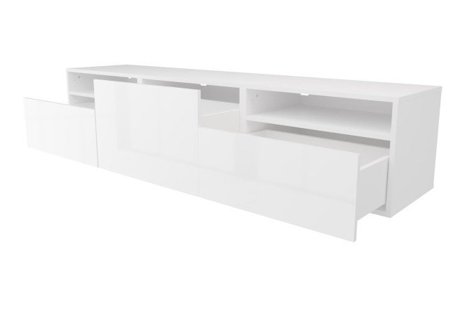 Cabinet with 3 drawers and 2 shelves Oscar Amika 180×38 with push to open, white / white gloss