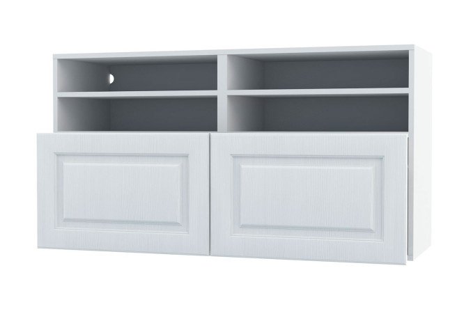 Cabinet with 4 shelves and drawers Oscar Bella 120×64 with push to open, white / white wood