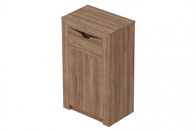 The Sorento cabinet will help make storing shoes and other things in the hallway compact and neat. The product is made in a modern style, combines practicality and original design. The shade of light oak looks impressive and harmonizes with any color environment. At the top of the cabinet there is a drawer for storing small items. On its facade there is a figured cutout that replaces a furniture handle. At the bottom there is a hinged section that allows you to place 4 pairs of shoes. The product belongs to the Sorento collection and looks great next to its other elements.