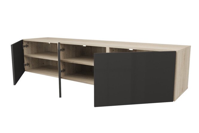 Cabinet with doors Oscar 180×38 cm, sonoma oak/black graphite gloss