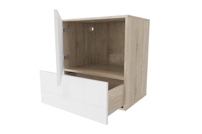 Cabinet with drawer and door Oscar Amika 60×64 with door closer, Sonoma oak / white gloss