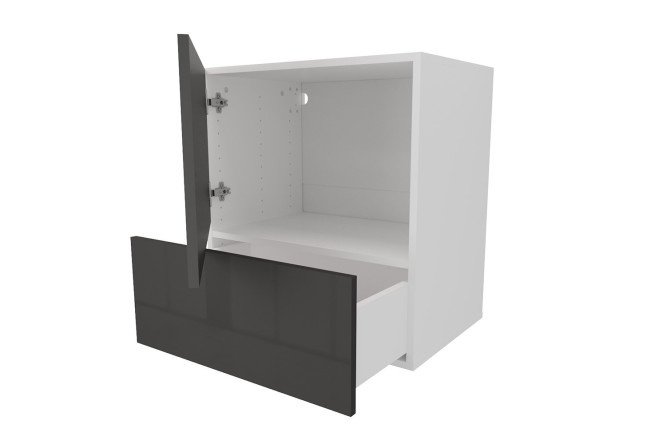 Cabinet with drawer and door Oscar Amika 60×64 with door closer, white / black graphite gloss