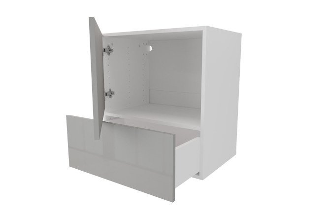 Cabinet with drawer and door Oscar Amika 60×64 with door closer, white / dusty gray gloss