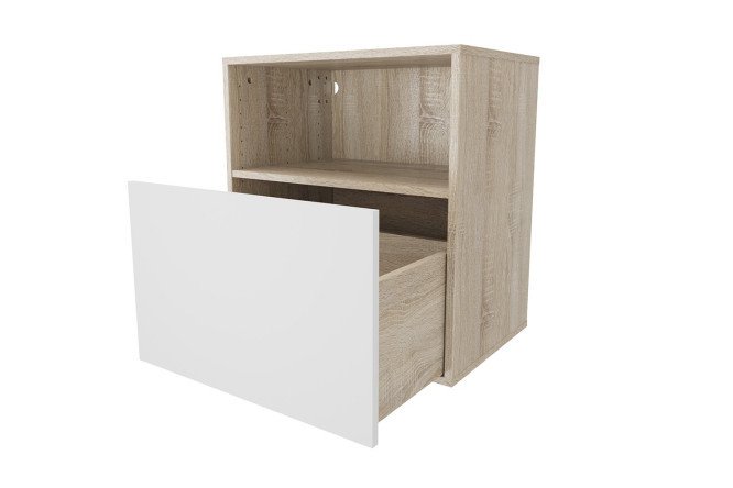 Cabinet with drawer and shelf Oscar Amika 60×64 with push to open, Sonoma oak / white gloss