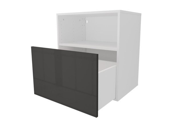 Cabinet with drawer and shelf Oscar Amika 60×64 with push to open, white / black graphite gloss