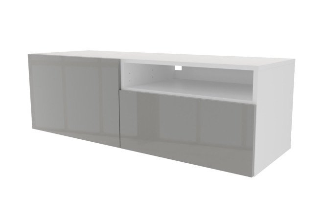 Cabinet with drawer, door and shelf Oscar Amika 120×38 with push to open, white / dusty gray gloss