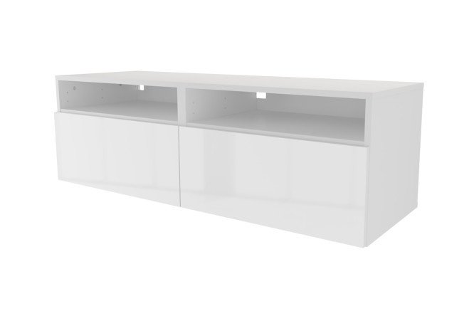 Cabinet with drawers and shelf Oscar Amika 120×38 with push to open, white / white gloss