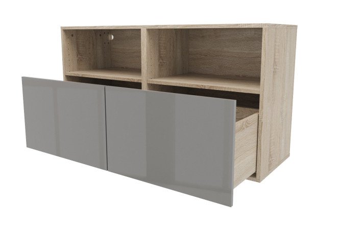 Cabinet with shelves and drawers Oscar Amika 120×64 with closers, Sonoma oak / dusty gray gloss