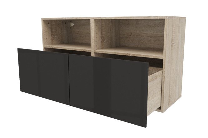 Cabinet with shelves and drawers Oscar Amika 120×64 with closers, Sonoma oak / glossy black graphite