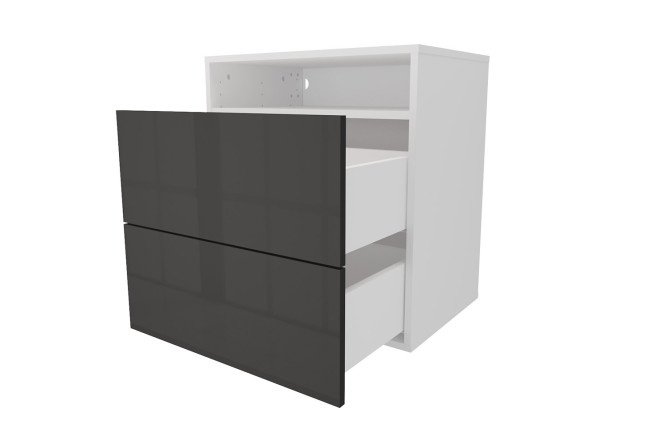 Cabinet with two drawers and a shelf Oscar Amika 60×64 with a closer, white / black graphite gloss