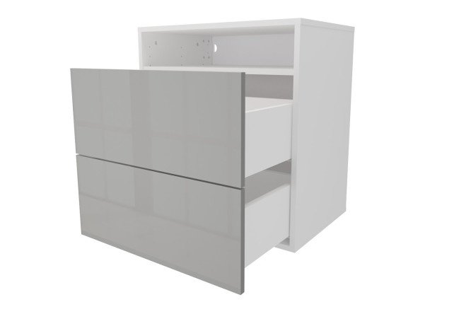 Cabinet with two drawers and shelf Oscar Amika 60×64 with push to open, white / dusty gray gloss