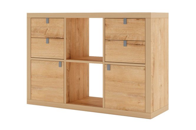 Calgary 3×2 shelving unit with doors and drawers, bunratty oak